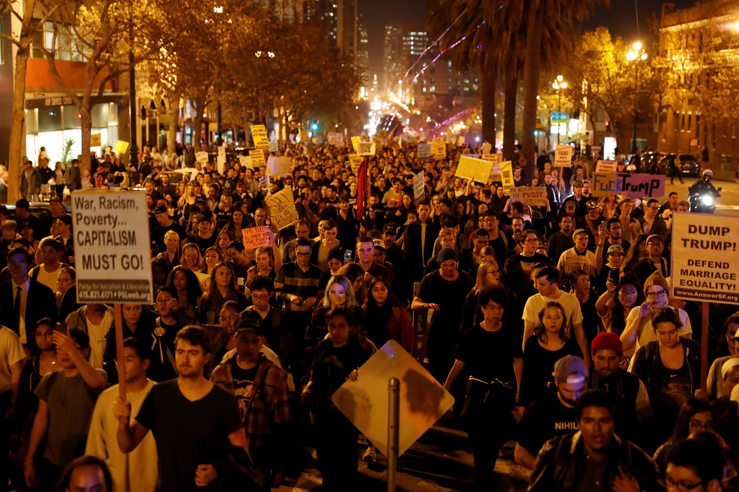 抗議しても、民主主義による投票で選ばれたので何も変わりません。確かにクリントンの方が総得票数は多かった。
